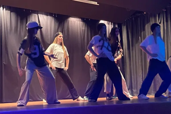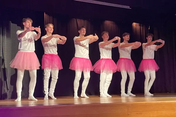Dazu immer wieder große Ensemble-Momente: Tanz-Choreografien mit der gesamten Jahrgangsstufe, darunter ein Männerballett (Respekt für den Mut zu peinlichen Momenten) im Duell mit dem Hip-Hop der Girls-Gang.