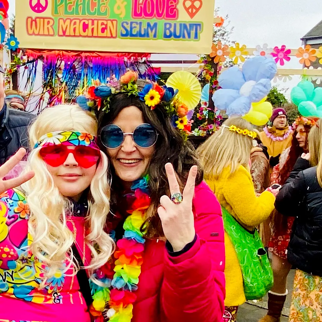 Fantasievollen Kostümen, bunt geschmückten Wagen und ausgelassener Stimmung gab es auch 2026 auf dem Karnevalsumzug in Selm. Und Janis wünscht Peace & Love für ein buntes Selm.